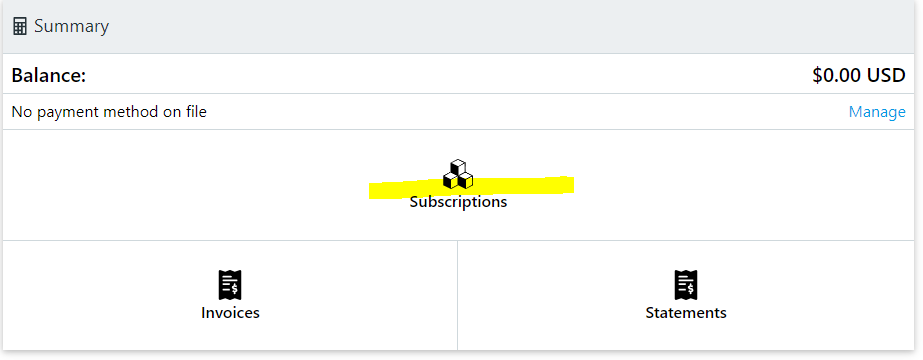 The main screen will have a section for each child account, and show summary information for each subscription under that account.