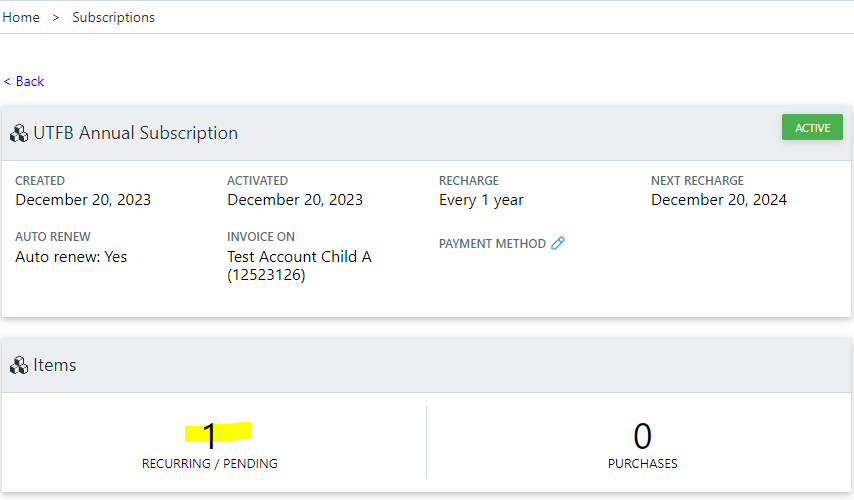 - “Invoice On” shows you if the subscription bills directly to that account as “Self” (for example, if you have franchise locations that pay directly), or to you as “Parent.”
