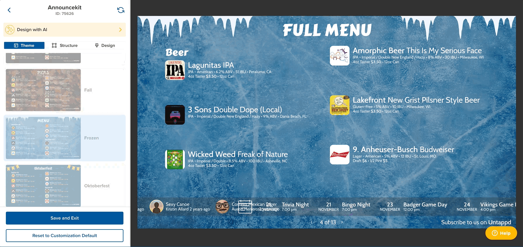 Our focus on improving your digital menus brings new themes, expanded event options, and intelligent design capabilities, all aimed at helping you stand out.